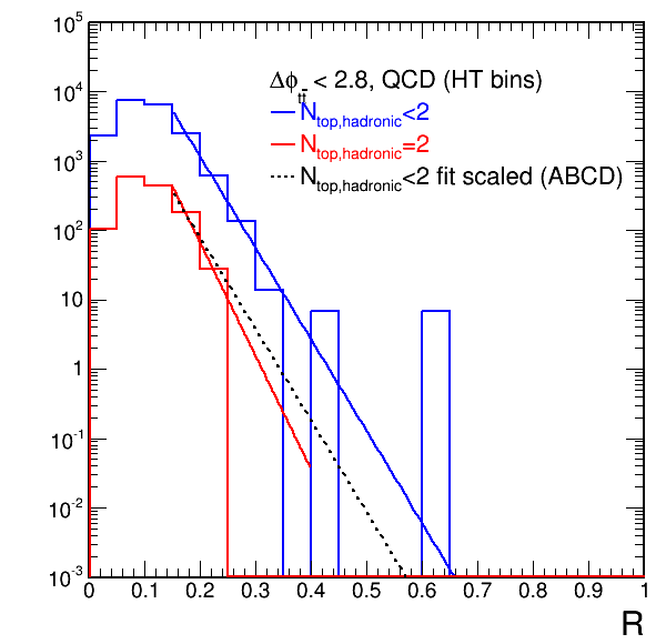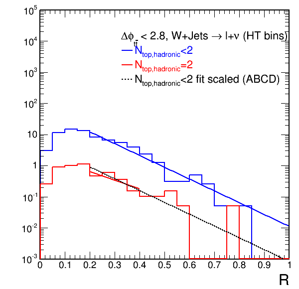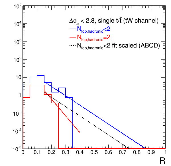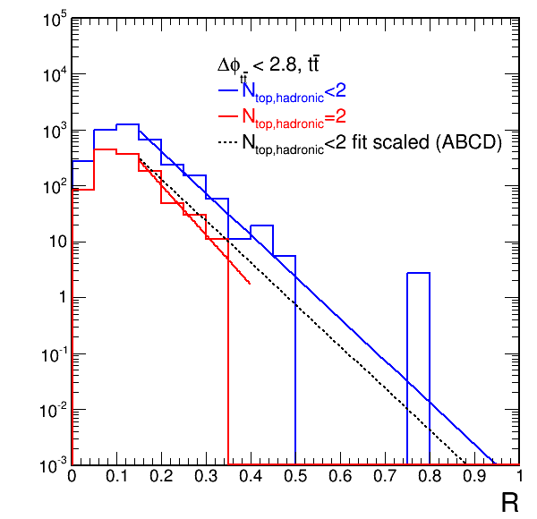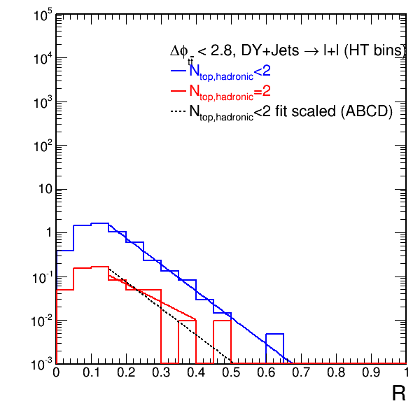 Plots - Extrapolation of R shape using an exponential fit in the NTop<2 SideBand