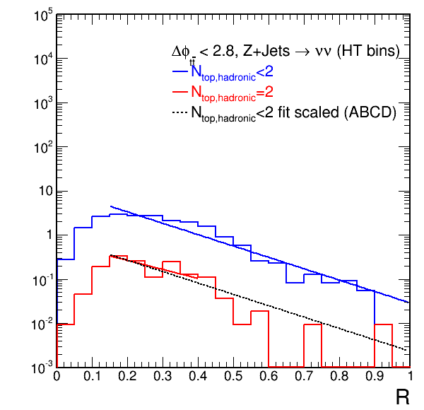 - Measure event yields in the R<0.4 sideband both for A) NTop<2 and C) NTop==2
